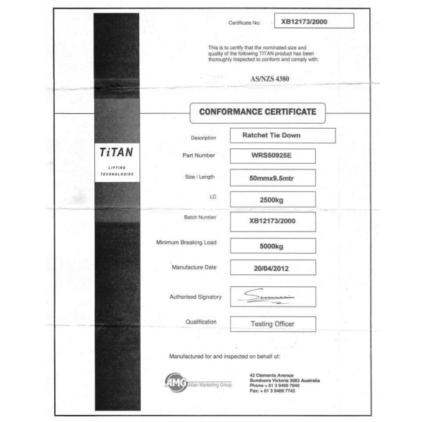These TiTAN Tie Downs EXCEED the minimum 2:1 Safety Factor required on all components used to manufacture this item under New Zealand Standards.