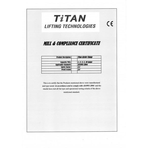 PLEASE NOTE: These TiTAN clamps are not rated of any side loading "Straight Vertical" Lift only...