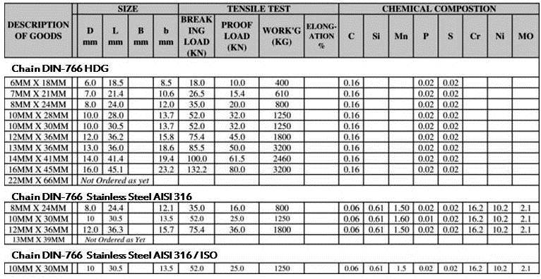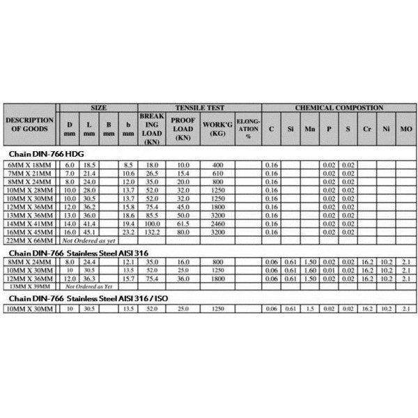 Our Din766 Calibrated Anchor Chain has a simular breaking load as both Grade 30 & Grade L Anchor Chains