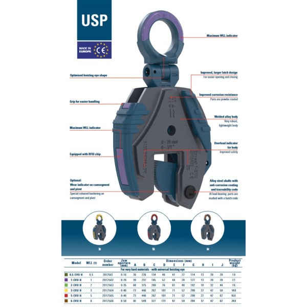 • Suitable for lifting, turning (180°), moving and vertical transfer of sheet, plates and constructions.
