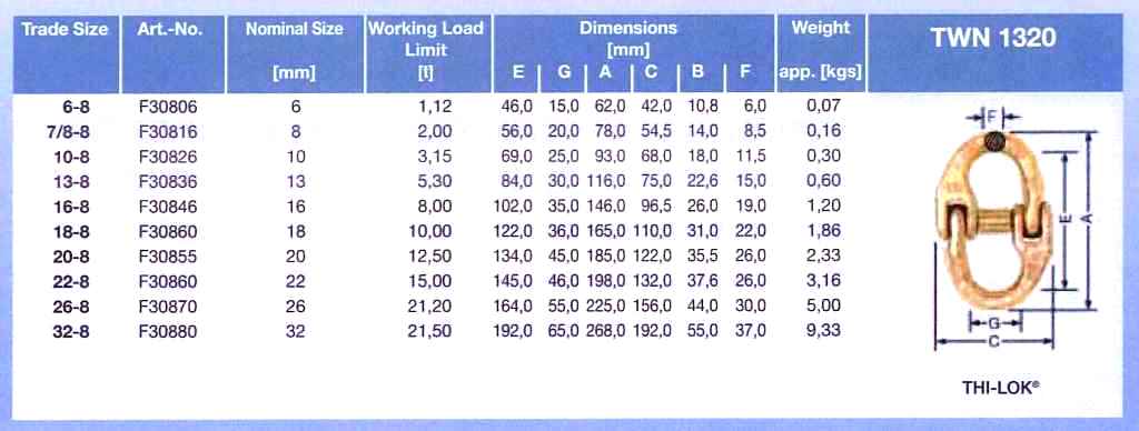 Rating : 20mm 12.5T 22mm 15T 26mm 21.2T