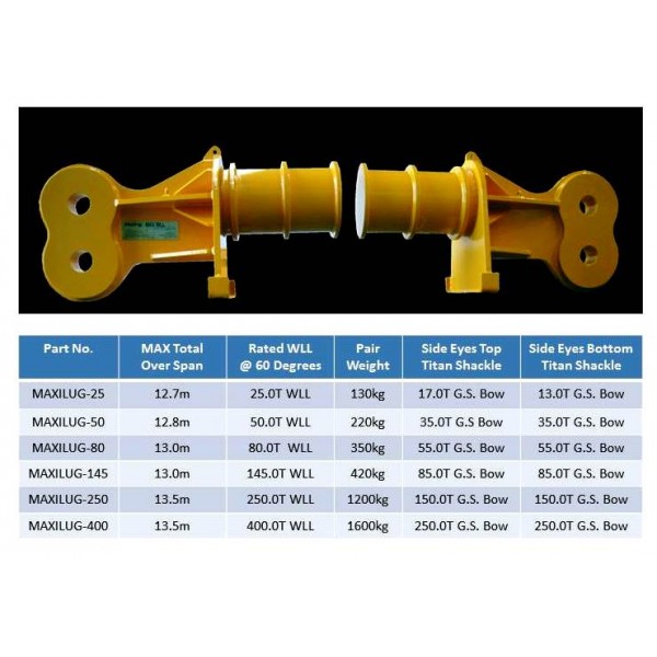 Drawings on "DOWNLOAD" for Spreader Bar "END CAPS" from 25T through to 400T WLL below..