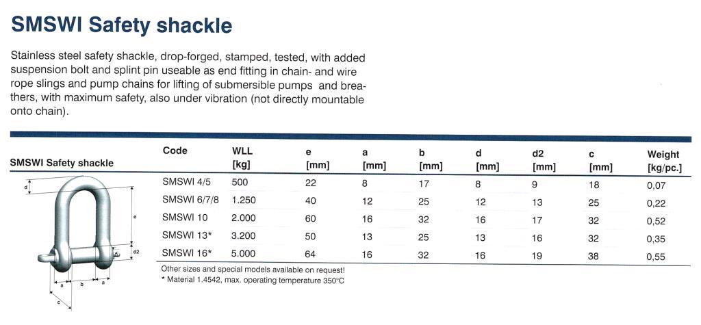 Used as end fitting in chain- and wire rope slings and pump chains for lifting of submersible pumps and breathers, with maximum safety, also under vibration (not directly mountable onto chain).