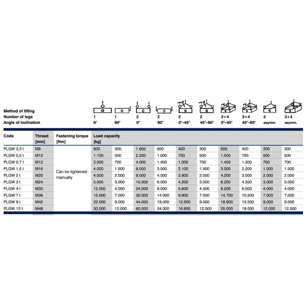 chrome VI-free finish-protection against corrosion and marked with WLL and thread size. Each lifting point is marked with an individual serial number, that allows traceability.