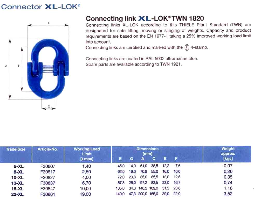 Rating : 8mm 2.5T 10mm 4T 13mm 6.7T 16mm 10T 22mm 19T 32mm 40T