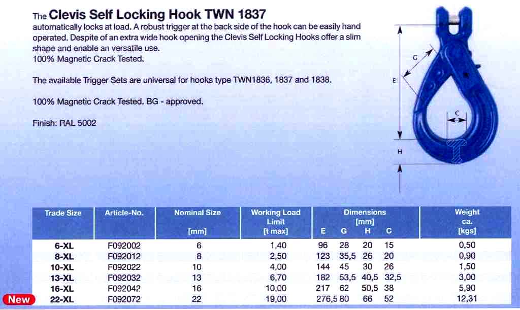 Safety Hook G100 - THIELE TWN1837 XL Clevis