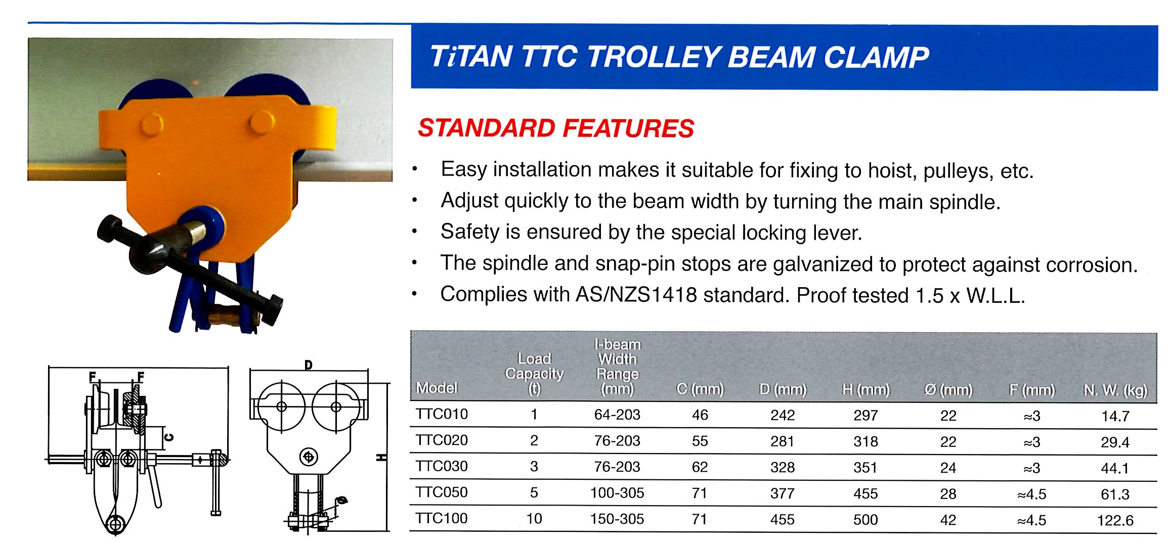 Rating : 1.0T WLL, 64-203mm 2.0T WLL, 76-203mm 3.0T WLL, 76-203mm 5.0T WLL, 100-305mm