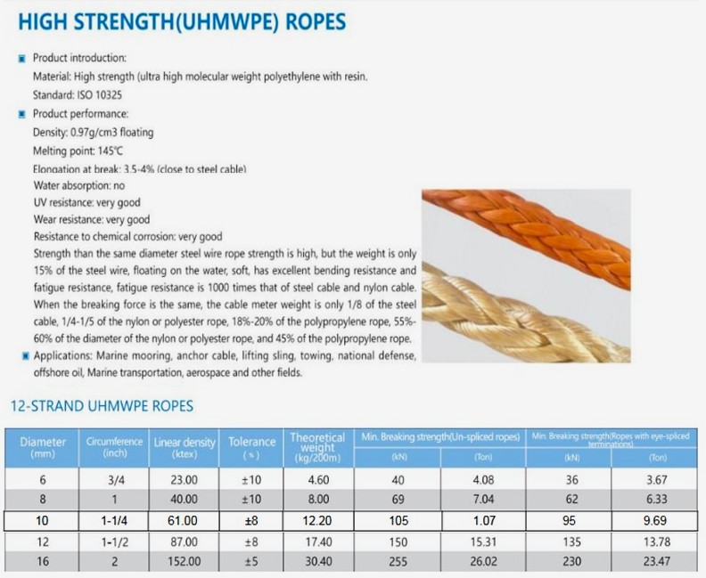 APPLICATIONS: Marine Moorings, Anchor Cable, Lifting Slings, Towing, National Defence, Offshore Oil, Marine Transportation, Trailer Winches, Aerospace.. Etc...